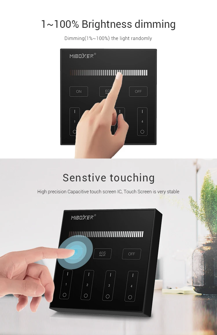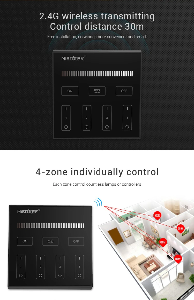 Geschikt voor het aansturen van LED Panelen van de MI-boxer Serie, LED Lampen en Single Controle LED Strip uit de MiBoxer Collectie.