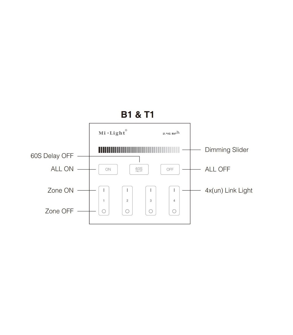 U kunt met deze 4 zone wandbediening: Aan/uit schakelen, dimmen en na 60 second laten uitschakelen