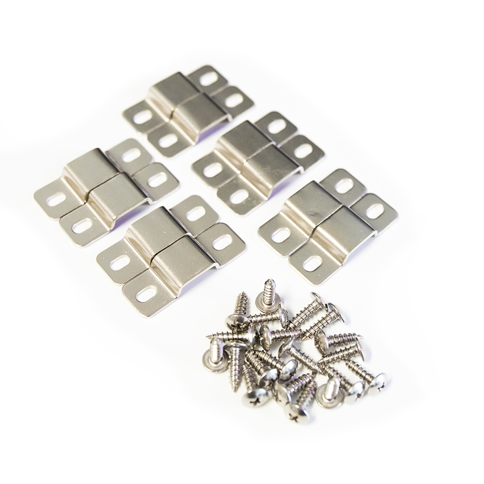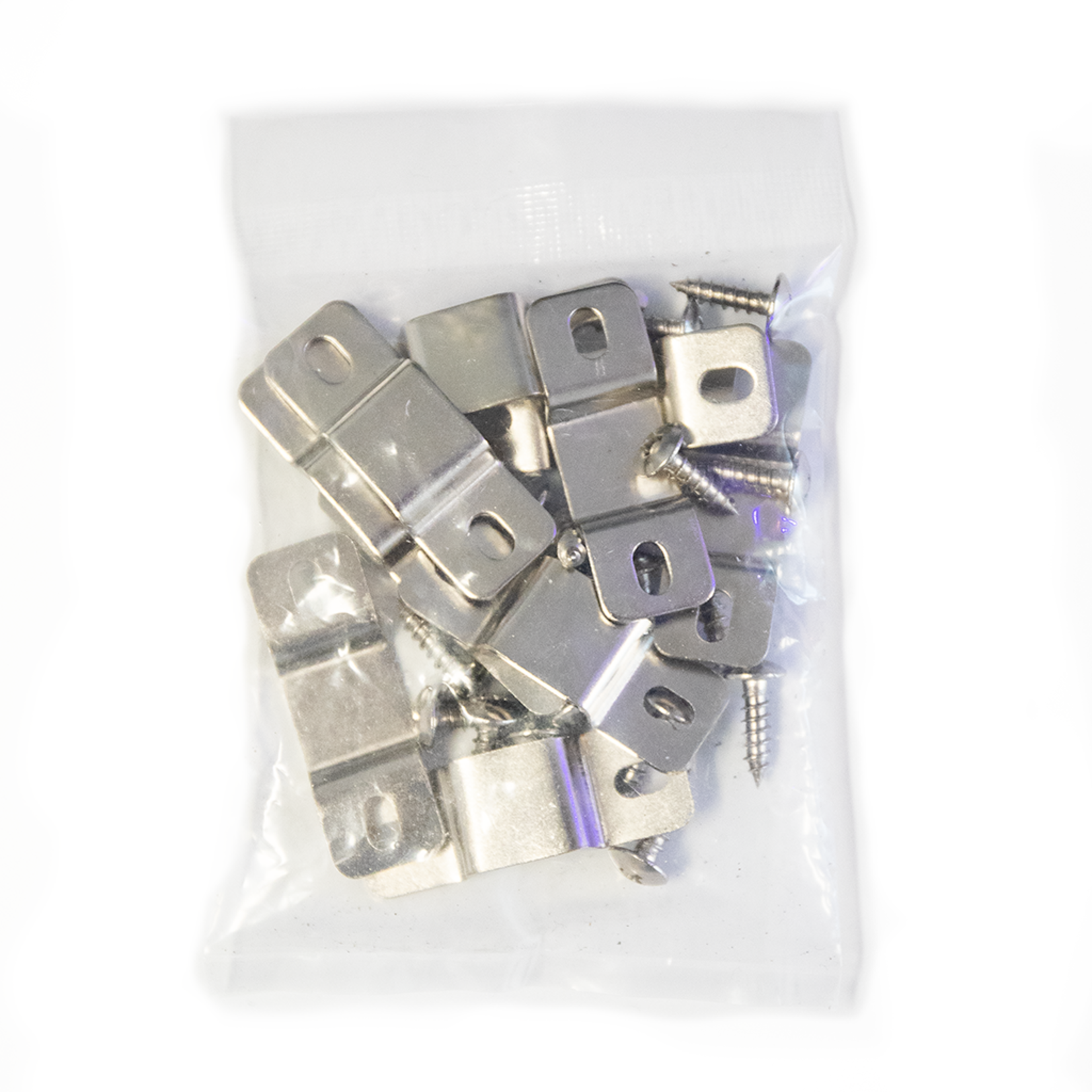 Een set bestaat uit 10 montagebeugels vervaardigd uit gegalvaniseerd staal en 20 schroeven van 304 roestvrij staal.