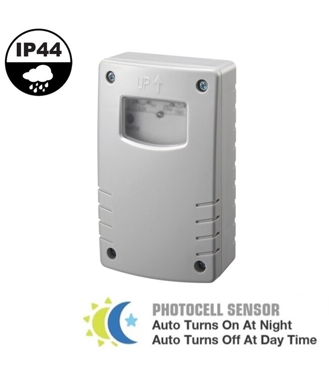 Deze opbouw LED Daglichtsensor is geschikt voor het automatisch aan en uitschakelen van (LED)verlichting tot maximaal 1200w LED of halogeen lampen. Het automatisch aan en uitschakelen gaat d.m.v. instelbare gewenste luxwaarde (daglicht).