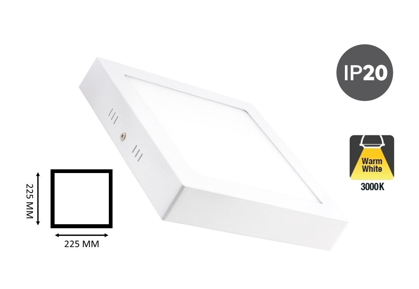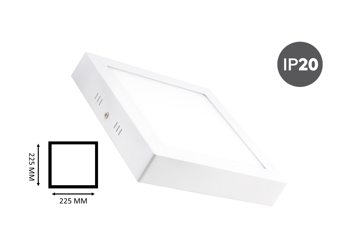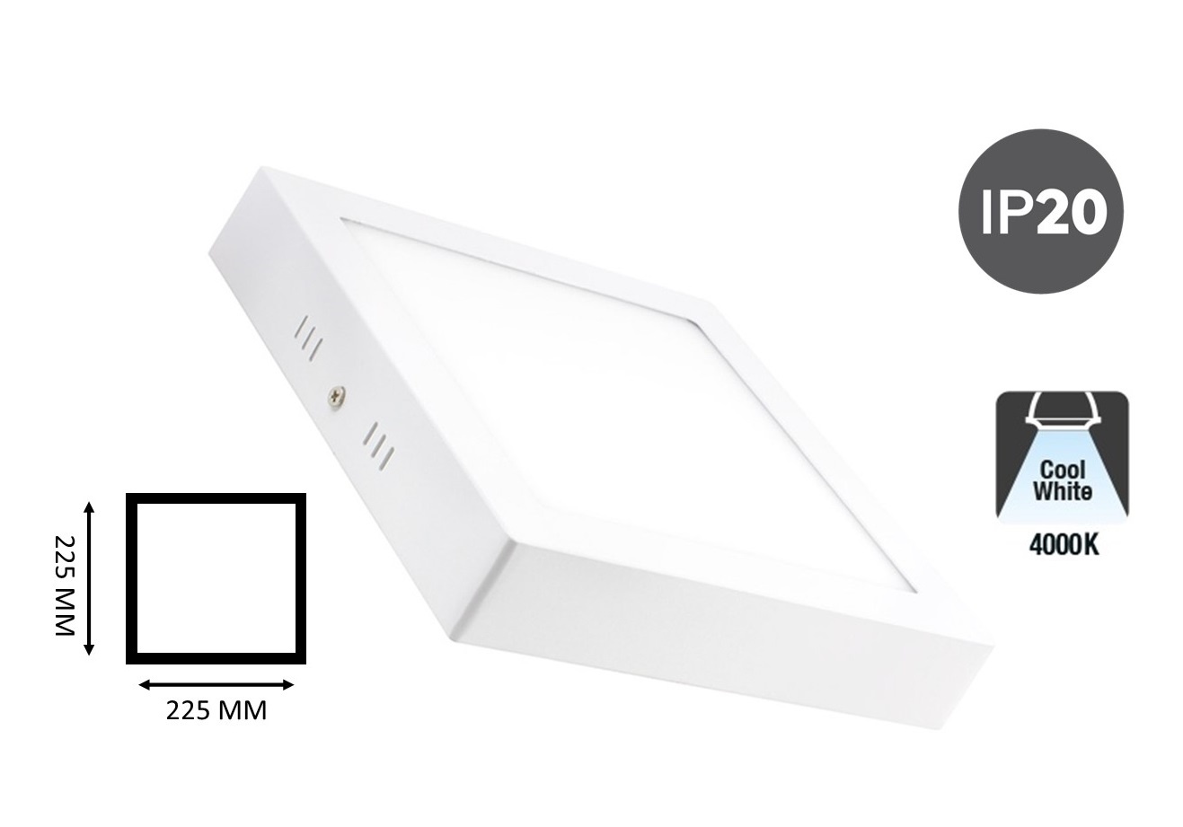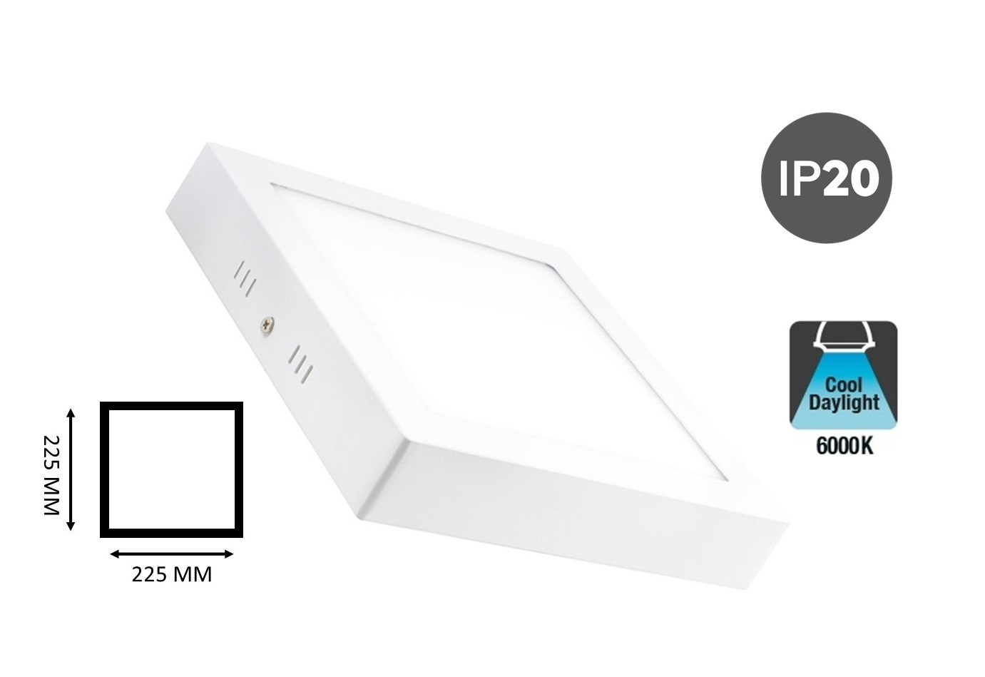 Opbouw LED Downlighter Vierkant 18w, 1480 Lumen, 225x225mm, Wit, IP20, 2 Jaar Garantie