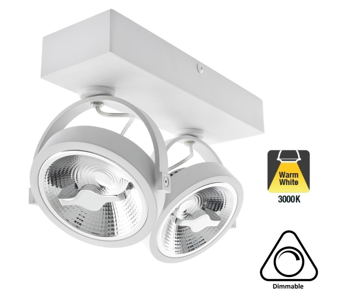 Deze zeer unieke opbouw LED spot AR111 model is geschikt voor het vervangen van een 2x75w AR111 gasontladingslamp armatuur. Door het moderne design van het armatuur is de LED Spot 30w AR111 te gebruiken als accentverlichting in winkelcentrum, hotels, galerij, museum, restaurants en woonhuizen. Dit type verlichting vormt een perfecte aanvulling op de algemene verlichting in elke ruimte. Elke spot kan 350º om zijn as worden gedraaid.