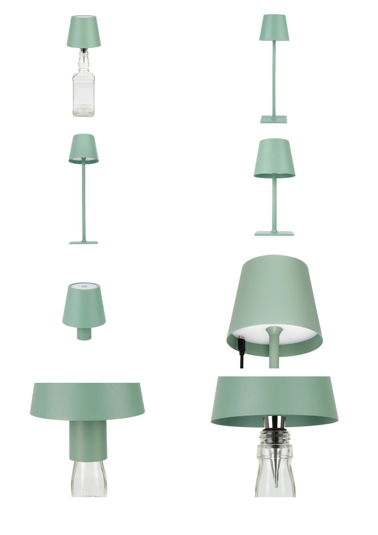 Met de 4 in 1 mogelijkheden kan je de lamp op verschillende manieren toepassen. De lamp kan op 2 verschillende hoogte op de voet geplaatst worden. Het is ook mogelijk om alleen de lamp te gebruiken. Zo is het mogelijk om de lamp op een (wijn)fles te monteren. Je kan de lamp als dop of sluitpin gebruiken. Zo maak je een decoratieve verlichting op de camping, op het terras of een tuinfeest.