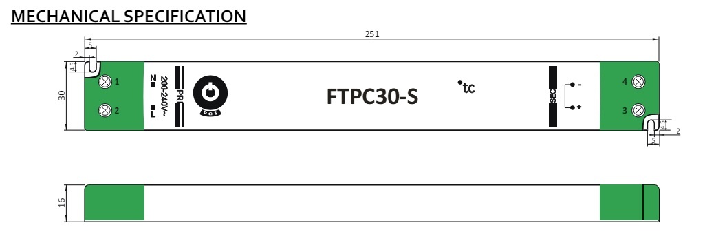 Deze LED strip voeding heeft een maatvoering van 251x30x16mm en is daarom zeer geschikt voor het gebruik in kasten, wanden en plafond met minimale inbouwhoogte.
