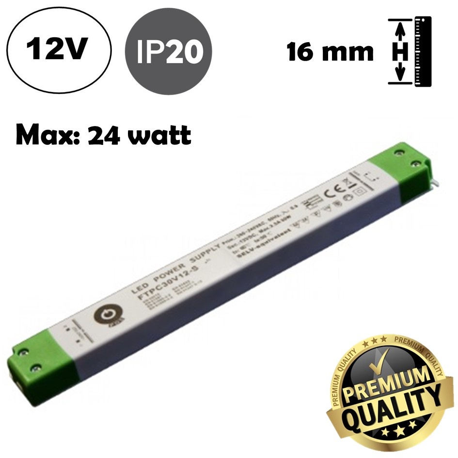 POS LongSlim Premium Led Strip voeding 12V/30W/2,5A, Max: 24w, Afm:251x30x16 mm, 3 Jaar Garantie