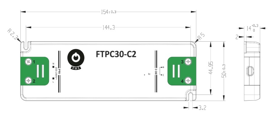 Deze LED strip voeding heeft een maatvoering van 154x50x14mm en is daarom zeer geschikt voor het gebruik in kasten, wanden en plafond met minimale inbouwhoogte.