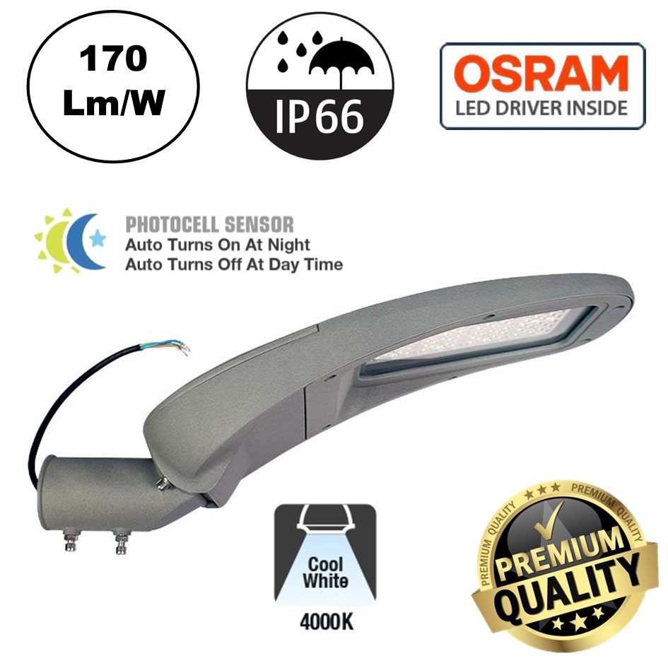 Premium Led Straatverlichting 150w, Met Daglichtsensor, 25500 Lm (170lm/w), 4000K Neutraal Wit, Osram LED Driver, IP66, IK10, 3 Jaar Garantie