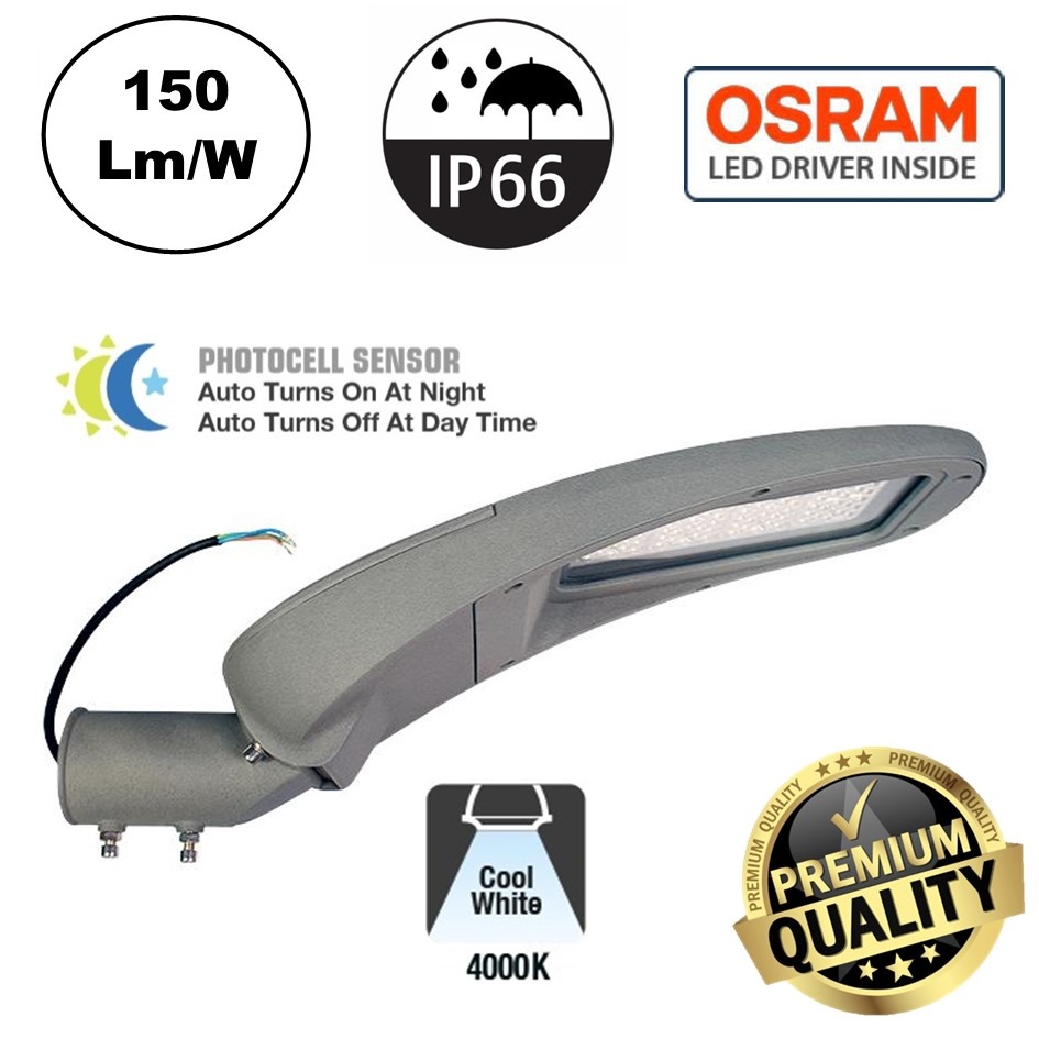 De 60w LED Straatlamp wordt geleverd met +-30cm aansluitsnoer (zonder stekker).