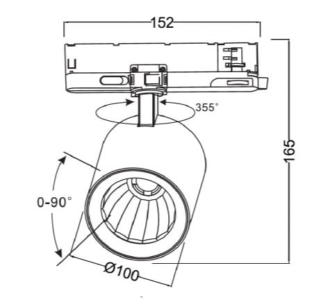 De Bridgelux led chip heeft een hoge kleurweergave CRI>90, hierdoor is deze tracklight bijzonder geschikt voor toepassingen in de retail. De led spot is universeel en kan worden aangesloten op een 3-fase spanningsrail. De compacte spot is 90° kantelbaar, de behuizing is 300° draaibaar.