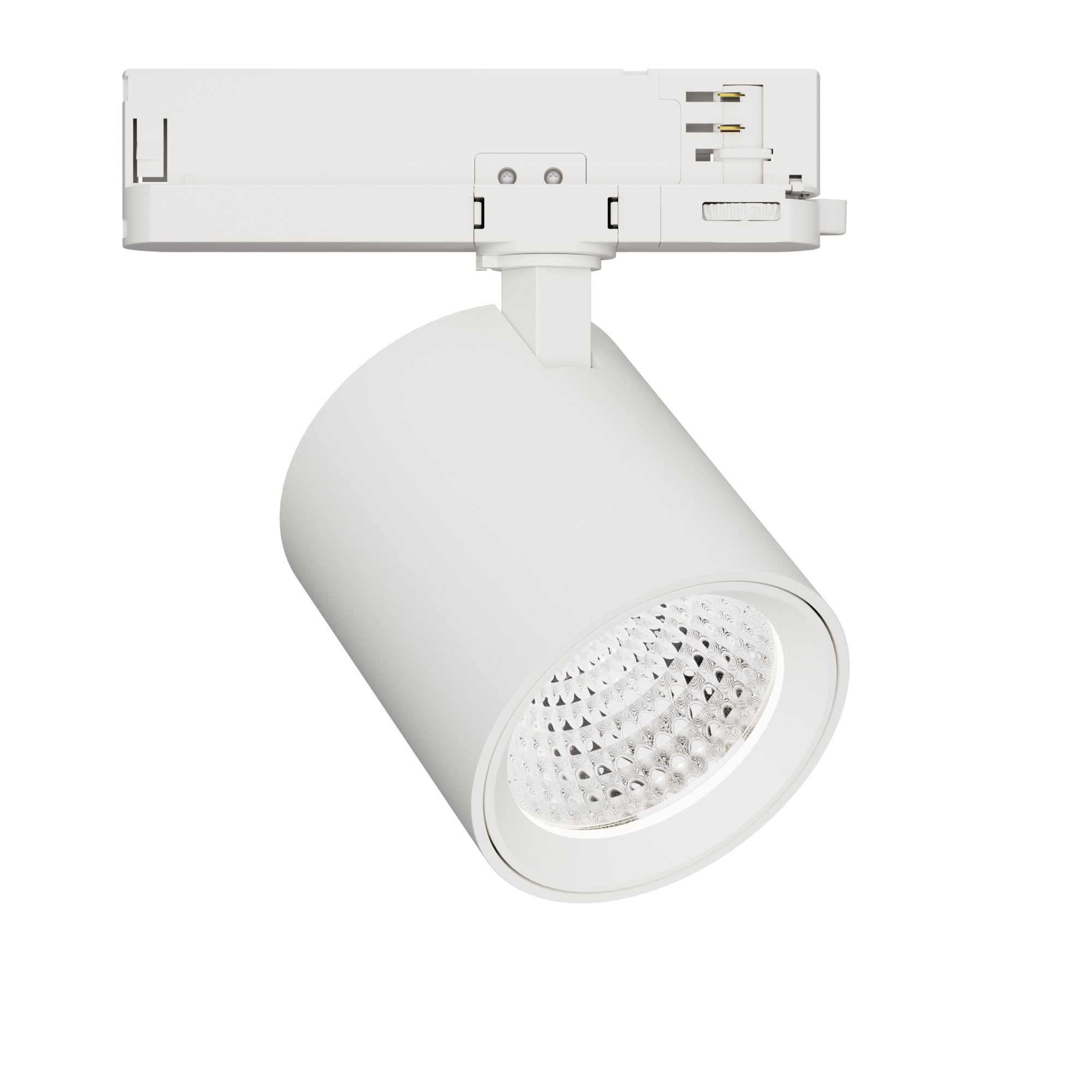 De Bridgelux led chip heeft een hoge kleurweergave CRI>90, hierdoor is deze tracklight bijzonder geschikt voor toepassingen in de retail. De led spot is universeel en kan worden aangesloten op een 3-fase spanningsrail. De compacte spot is 90° kantelbaar, de behuizing is 300° draaibaar.