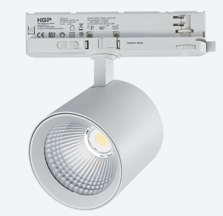 Deze zeer hoogwaardige kwaliteit LED Rail spot heeft een zeer luxe en strak afgewerkt design. Dankzij het moderne design is de rail spot een eyecatcher in elke winkel, kantoor of restaurant. Het armatuur wordt standaard geleverd met flash-free/flikkervrije KGP LED driver welke is geïntegreerd in de adapter. Middels dip-switch/powerswitch is de wattage in stapjes van 50ma instelbaar, het instelbereik is van 300 (12W) tot 1050ma (42W). De reflector heeft een standaard 60° bundel. Bij de lamp wordt een 36 graden bundel bij geleverd (optioneel kan je deze door ons laten voor monteren).