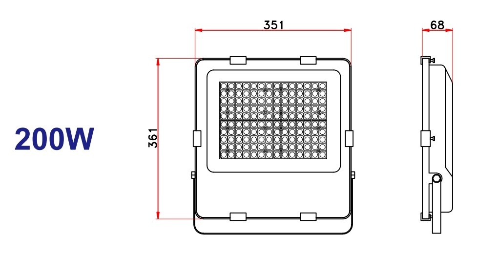 Zeer hoogwaardige kwaliteit LED Floodlight 200w. Deze LED Floodlight 200w heeft maar liefst 150 lumen per watt (in 3000K 140 Lumen per watt) met een lichtopbrengst van 30000 Lumen. Dankzij de hoge lumen vervangt de LED Floodlight 200w een 400w+ schijnwerper. De besparing bedraagt maar liefst 200w of wel minimaal 50% op de huidige belichting! De 200w led floodlight is gemaakt van hoogwaardige kwaliteit aluminium. Het verdiepte model zorgt voor een brede lichtverspreiding van 90 graden. De 280 krachtige LEDS zit dieper in het armatuur gemonteerd. Dit heeft als voordeel dat de voeding apart van de leds in de behuizing gemonteerd zit. De vele koelribben aan de achterkant van het armatuur zorgt voor voldoende koeling voor jaren lang plezier.