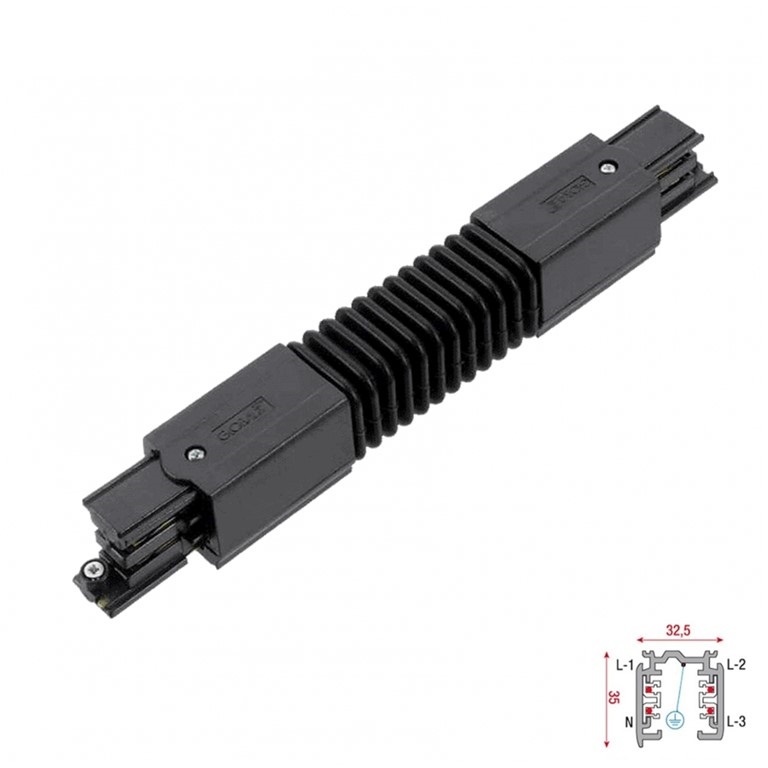 Met deze 3 Fase Rail Flex koppelverbinding is het mogelijk de 3 Fase rail 4 wire Zwart te verlengen. De koppelverbinding kan gebruikt worden op de 1 meter, 1.5 meter, 2 meter en 3 meter rails.