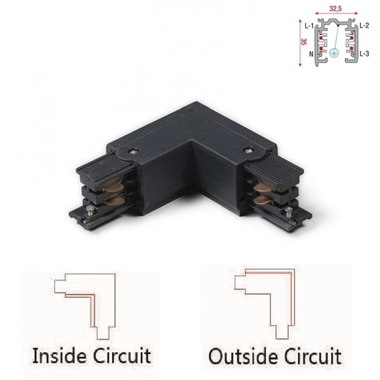 Met deze Universele 3 Fase Rail hoekverbinding aansluiting is het mogelijk de 3 Fase rail 4 wire Zwart te voorzien van 90graden hoekverbinding en indien gewenst als aansluitblok te gebruiken. De hoekverbinding kan gebruikt worden op de 1 meter, 1.5 meter, 2 meter en 3 meter rails.