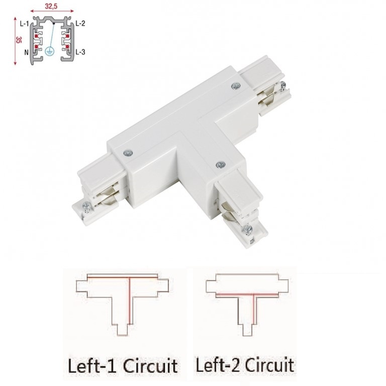 3 Fase Rail T-verbinding voor BINNEN en BUITEN aansluiting - LINKS