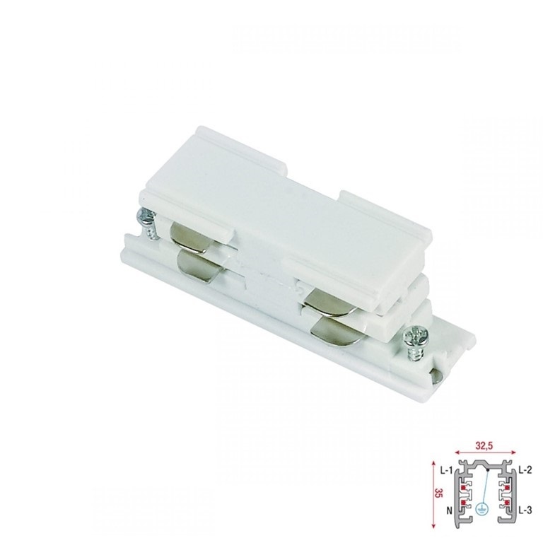 Met deze 3 Fase Rail koppelstuk recht is het mogelijk de 3 Fase rail 4 wire wit te verlengen. De koppelverbinding kan gebruikt worden op de 1 meter, 1.5 meter, 2 meter en 3 meter rails.