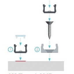De SlimLine LED strip profiel kan als opbouw profiel gebruikt worden. Je monteert het profiel direct tegen het plafond, wand of gipsplaat met een montagebeugel (artikelnummer LLA2690)Of gebruik een stevige 3M Dubbelzijdige tape.(artikelnummer:LDA1866)