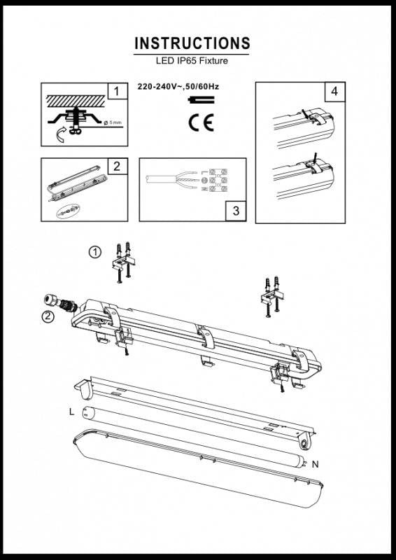 Zeer goede kwalitatief spatwaterdicht (IP65) LED TL armatuur 120cm. Armatuur is gemaakt van zeer stevig Polycarbonaat en ABS kunststof met RVS bevestigingsmaterialen en kunststof sluitclips. Het led armatuur wordt geleverd met; kunststof sluitclips, RVS montagebeugels, RVS driehoekjes (voor ketting montage), zakje met bevestigingsmateriaal en één wartel PG11 met moer.