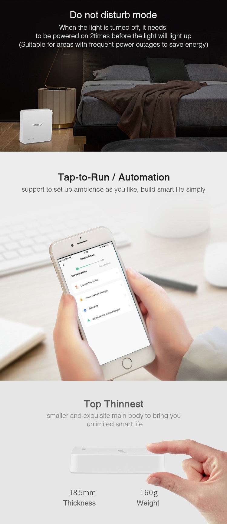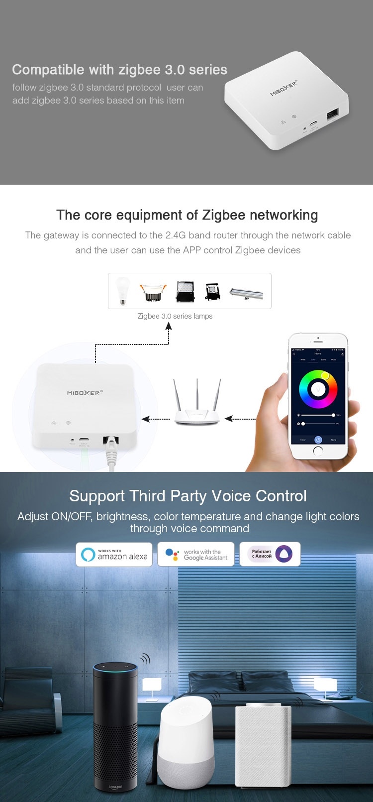 Deze Miboxer hub werkt met het Zigbee protocol 3.0 en is het controlestation binnen uw smart verlichting en zorgt voor de communicatie met al uw gekoppelde apparaten. Zo kunt u uw verlichting vanaf uw telefoon en tablet volledig sturen met de App.