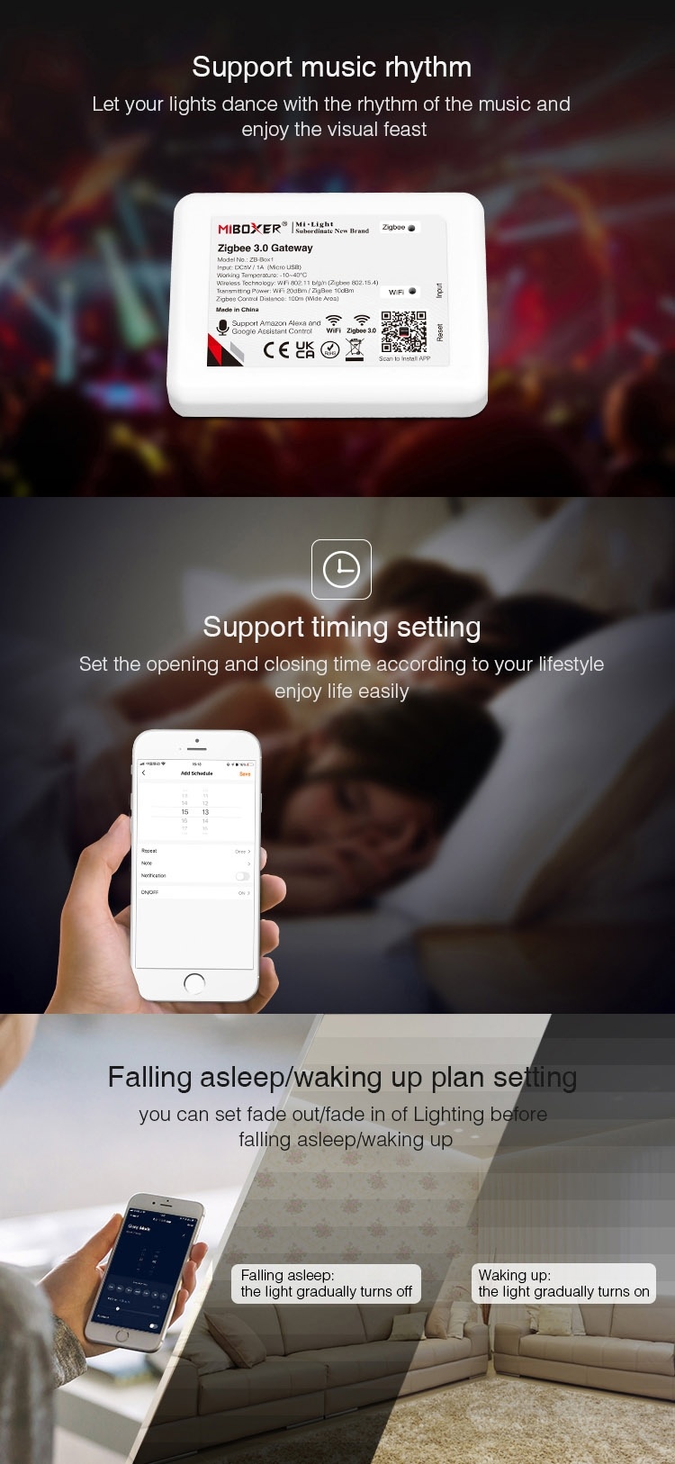 Deze Miboxer hub werkt met het Zigbee protocol 3.0 en is het controlestation binnen uw smart verlichting en zorgt voor de communicatie met al uw gekoppelde apparaten. Zo kunt u uw verlichting vanaf uw telefoon en tablet volledig sturen met de App.