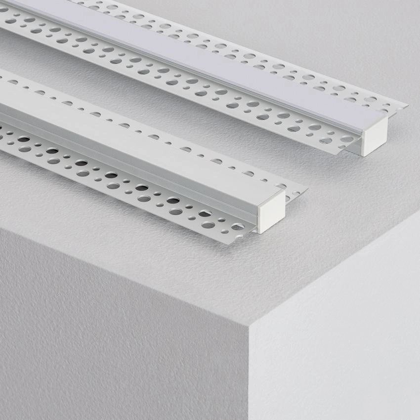 De Stuc LED strip profiel kan als inbouw profiel gebruikt worden. Waarbij je het profiel verwerkt in je gipsplaat en afwerkt met een stuclaag rondom het profiel. Je krijgt dan een strakke lichtlijn horizontale of verticale lichtlijn op je muur of plafond.
