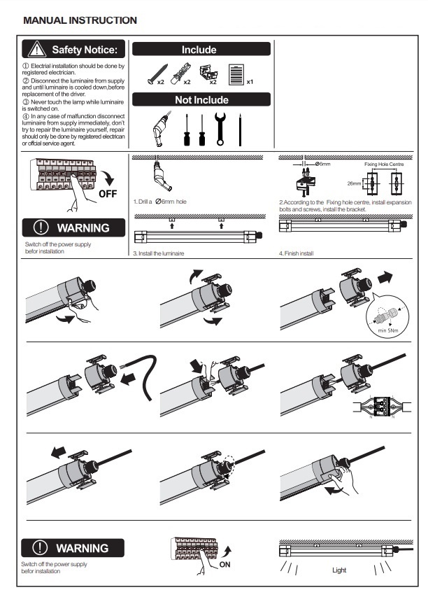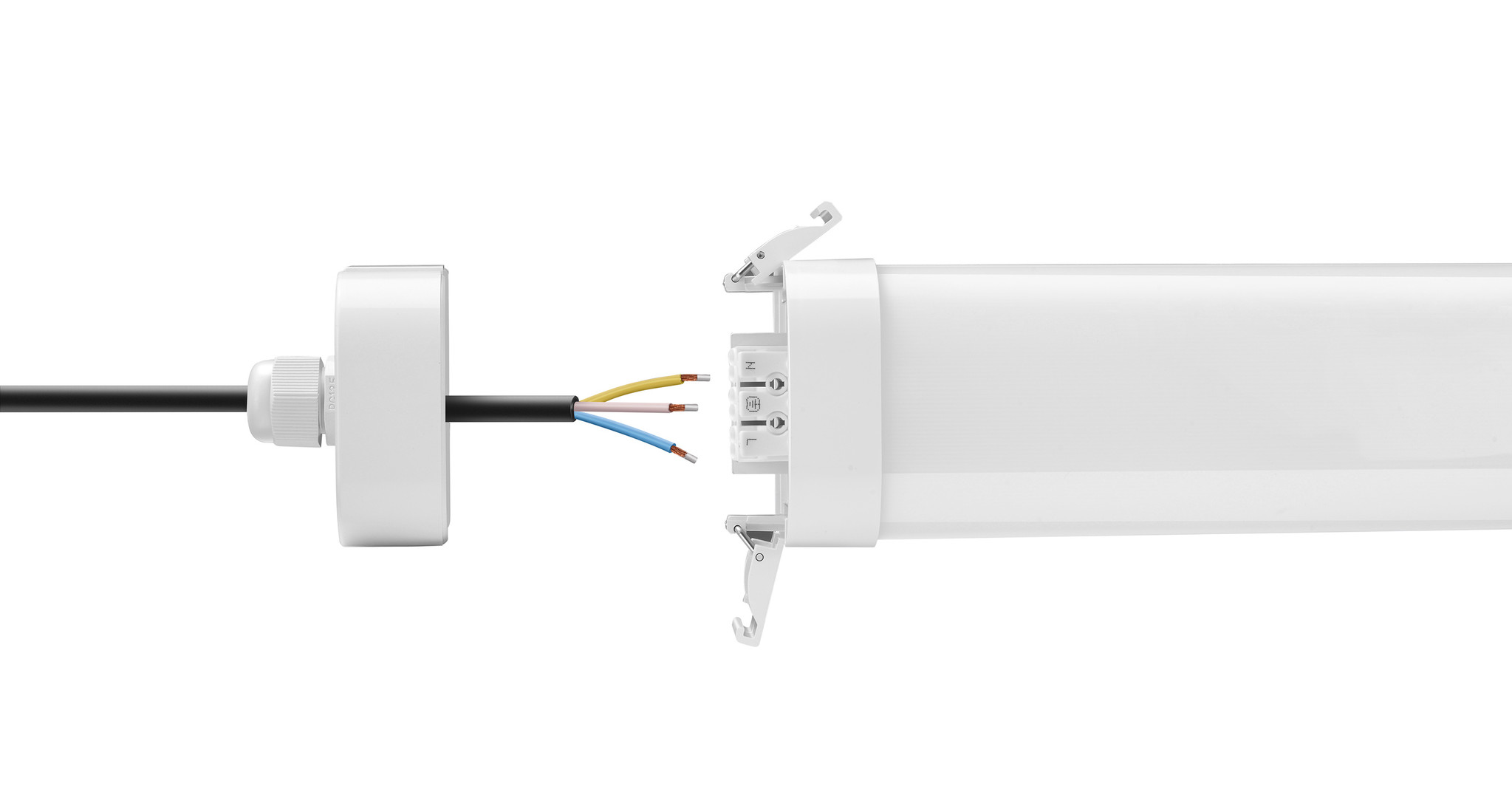 De UTC Led Tri proof is voorzien wartels aan de kopse kanten waar je een 3x 1,5mm2 installatiekabel door kan invoeren. Dankzij de wartels aan de kopste kanten, kan je heel eenvoudig en snel meerdere armaturen achter elkaar hangen. Het armatuur is intern voorzien van een 3x1,5mm2 installatiekabel.