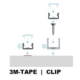 De Norman LED strip profiel kan als opbouw profiel gebruikt worden. Je monteert het profiel direct tegen het plafond, wand of gipsplaat met een montagebeugel (artikelnummer LLA2686)Of gebruik een stevige 3M Dubbelzijdige tape.(artikelnummer:LDA1866)