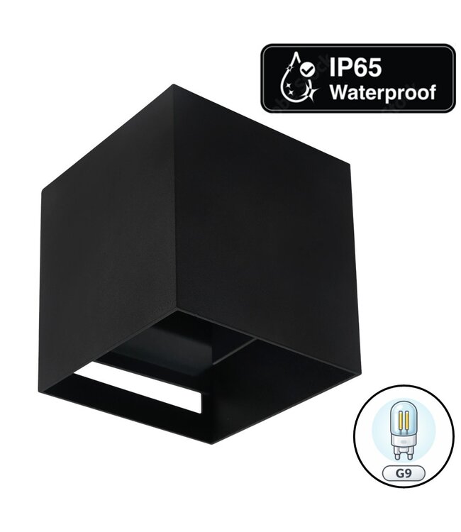 Moderne Wandlamp Cube met up/down licht in zwart kleurige behuizing Lees meer.